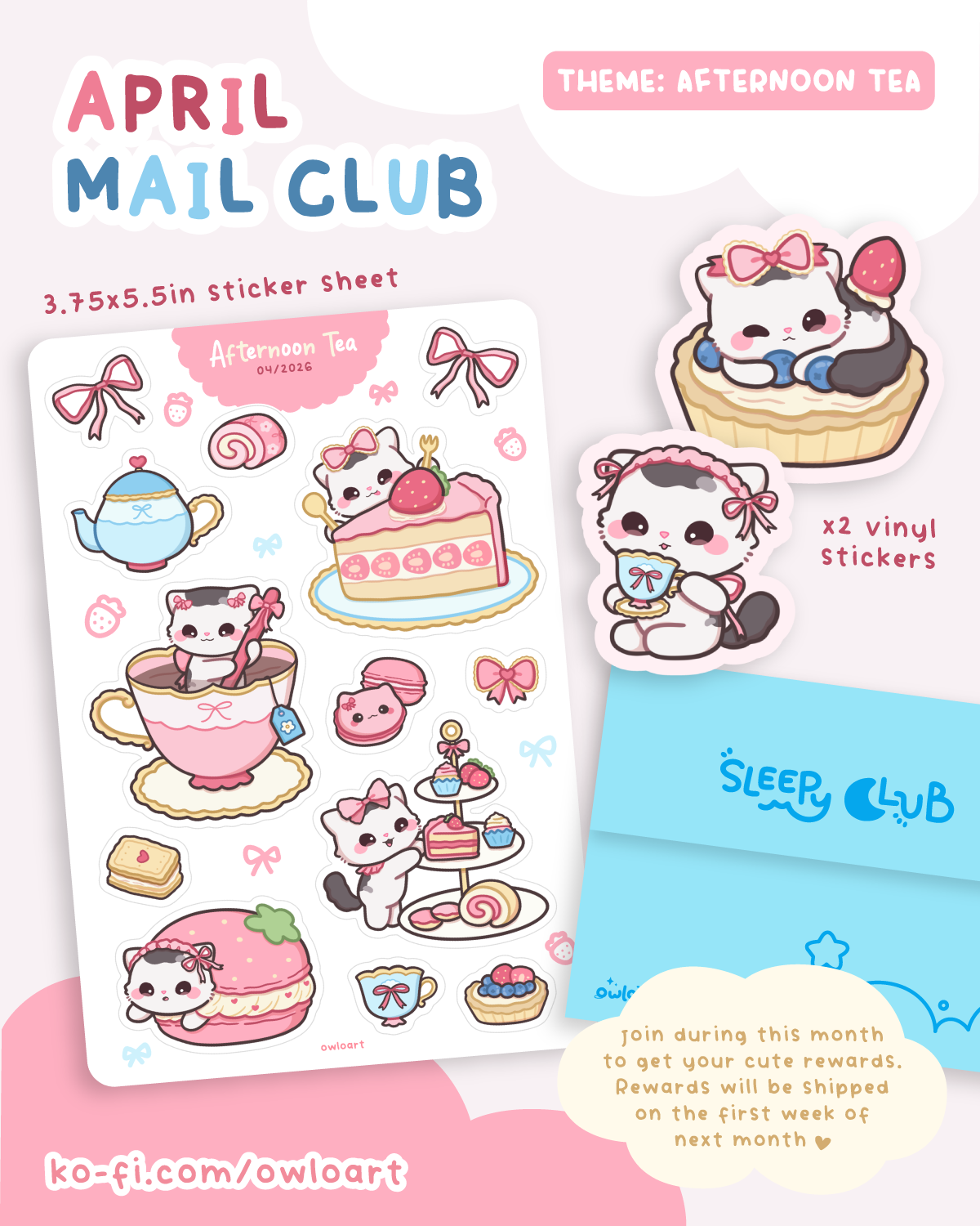 Sleepy Club is my monthly sticker membership with cozy themes and exclusive designs. Join anytime to receive sleepy mail, shipped the following month 🌙💤