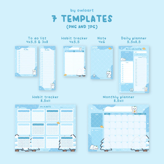 Blueberry Cat Planner Stationery Bundle Digital Download (7 templates)