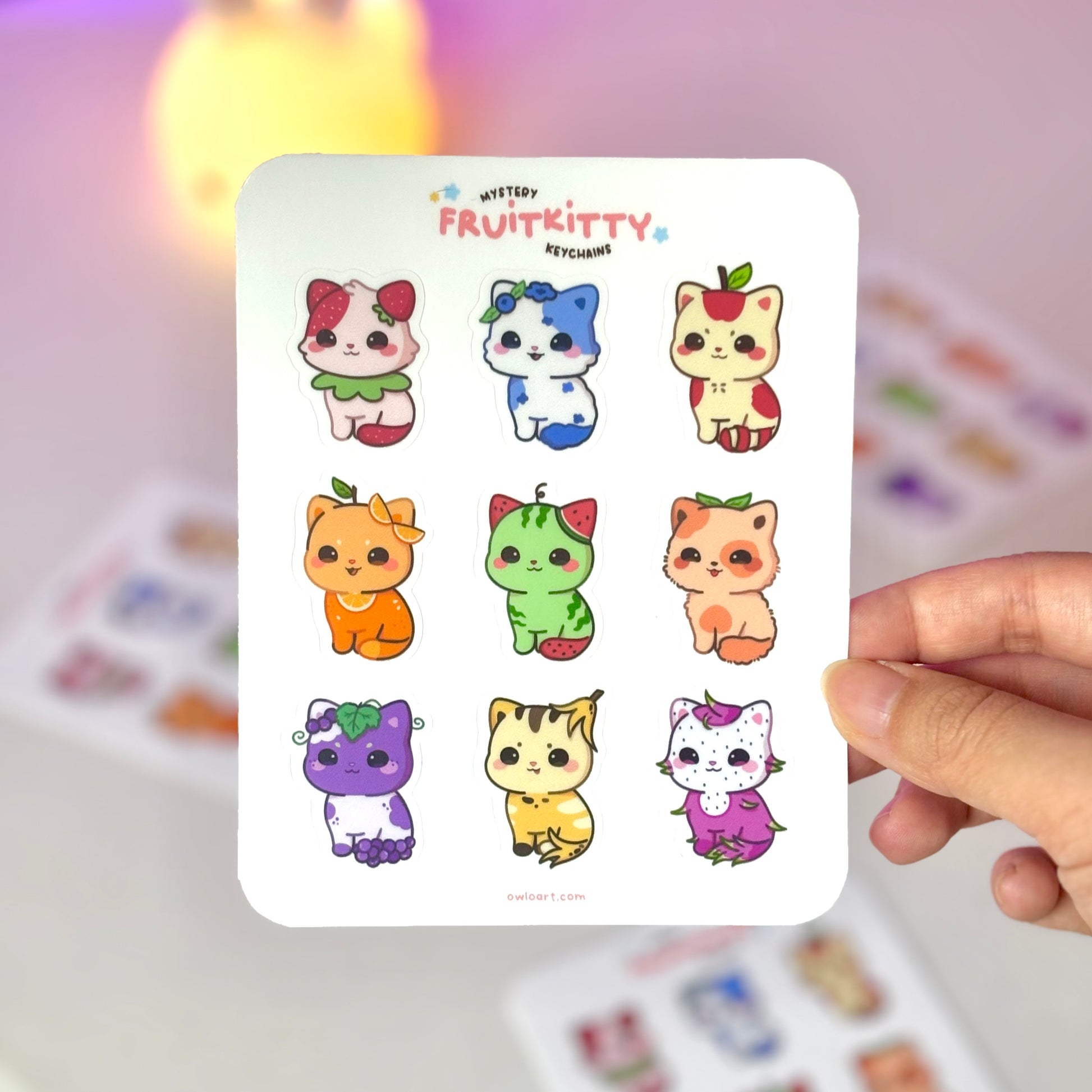 The entire fruity gang, now in one place! This sheet features 9 different FruitKitties, perfect for decorating journals, laptops, and more.