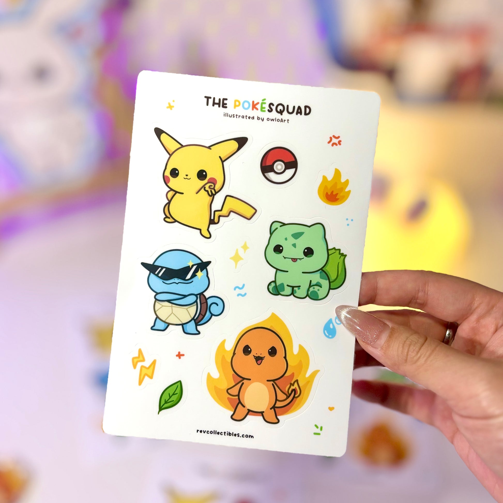Meet your favorite starter buddies in their cutest form! This waterproof sticker sheet features Electric Cutie, Silly Plant Buddie, Cool Sunglasses Turtle, and Mischievous Fire Lizard—each bringing their own playful energy. Whether you're jazzing up your planner, decorating your water bottle, or personalizing your laptop, these stickers are perfect for trainers of all ages.