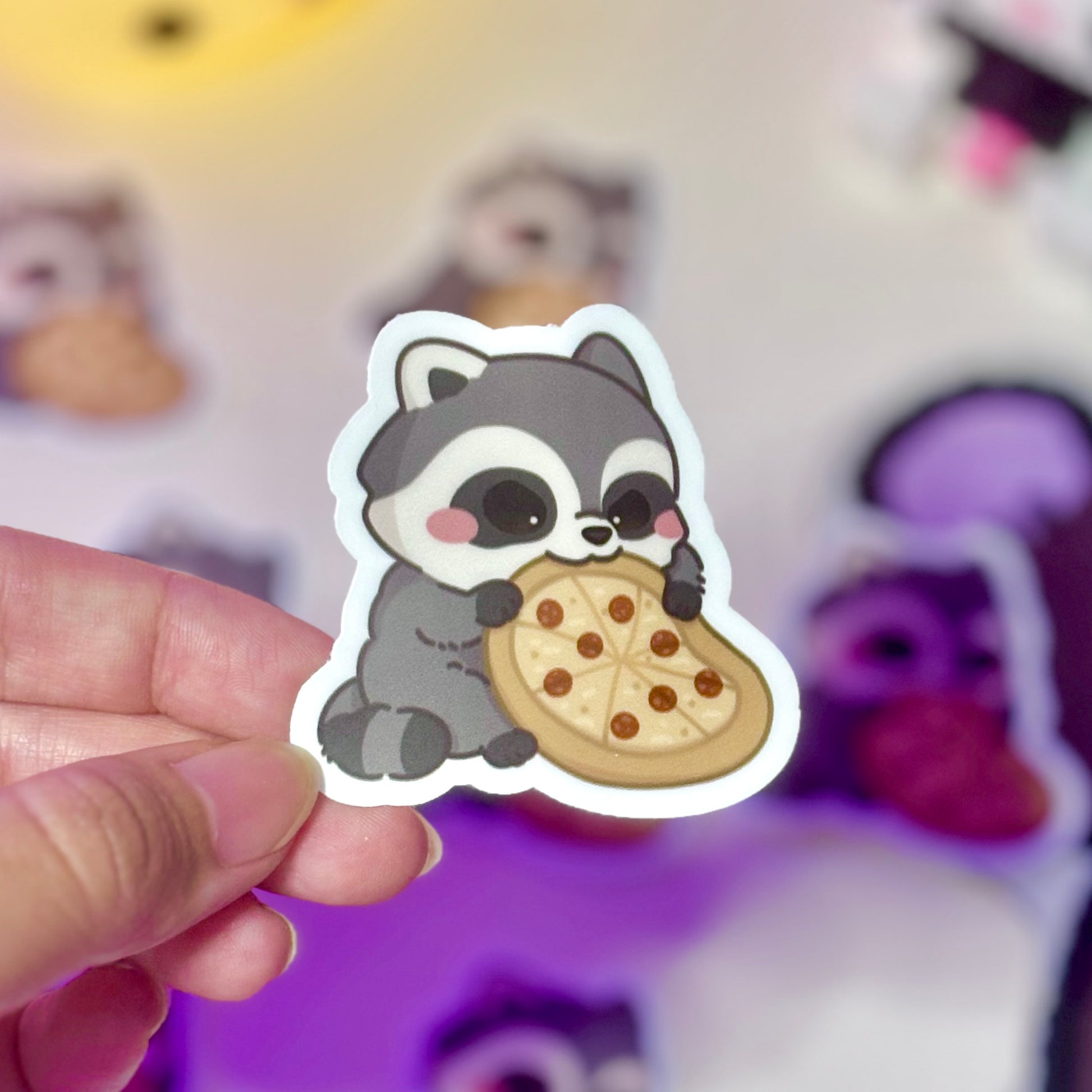 Raccoon Pizza Waterproof Matte Sticker