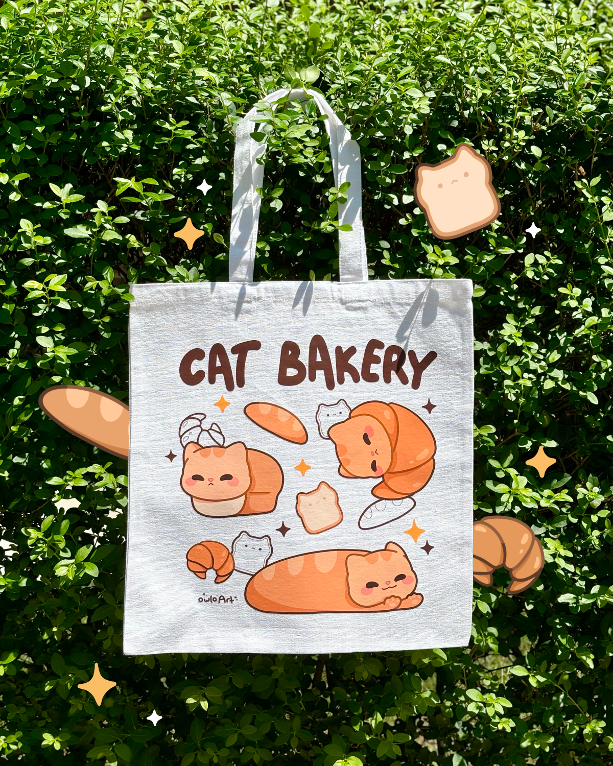 Welcome to the purrfect little bakery where the cats are the pastries! This cat bakery tote bag features adorable feline treats shaped just like the way cats nap, curled up like a croissant, loafed like a fresh-baked bread, and stretched out like a warm baguette. It's a cozy and whimsical design for cat lovers and pastry fans alike. Great for café runs, library trips, or adding a little sweetness to your daily errands.