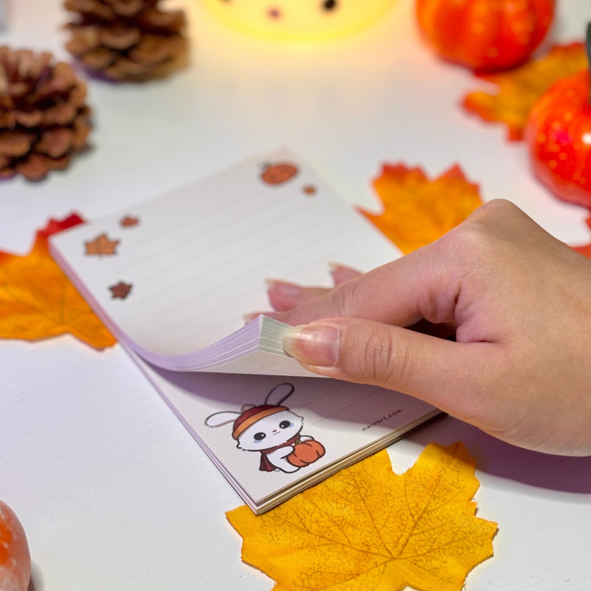Make every note extra cozy with this fall-themed notepad! Featuring Owlo picking a pumpkin, it’s the perfect seasonal desk companion for jotting down reminders, lists, or journal entries.