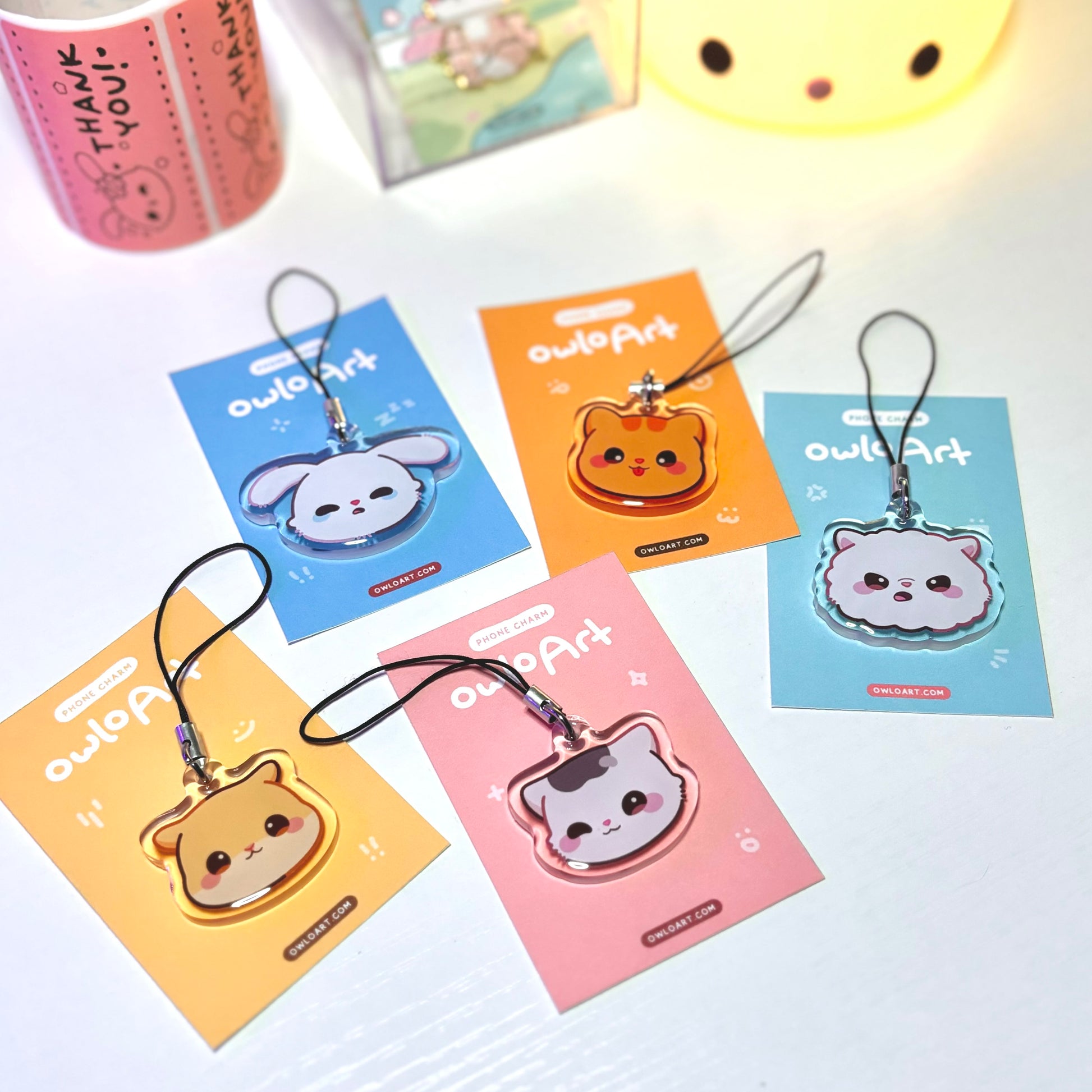 Take your favorite friends everywhere with these silly and adorable double-sided phone charms featuring owlo, Reese, Remi, Sushi, and Miso!