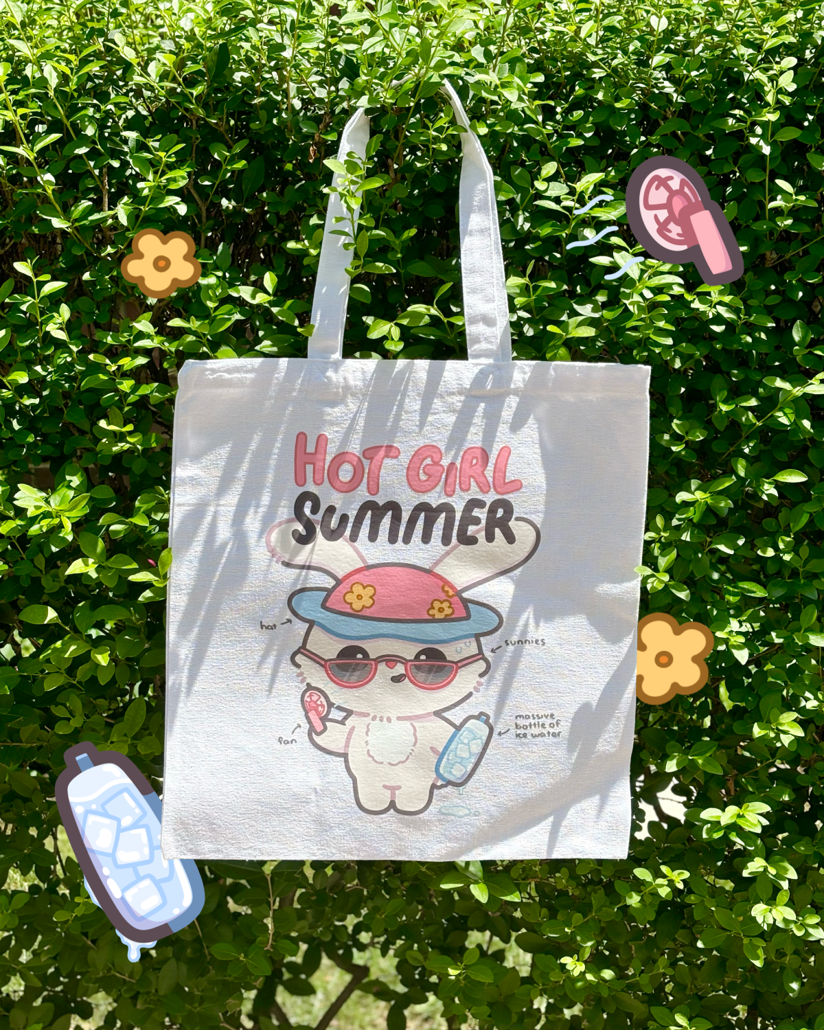 Owlo the bunny is in her hot girl summer survival mode: sweating in the sun with her summer hat, sunnies, mini fan, and an oversized bottle of ice water. This funny summer tote bag is perfect for anyone who feels personally attacked by the heat and just wants to be cute while staying cool. Great for everyday errands, beach trips, or as a gift for the always-overheated introvert in your life.