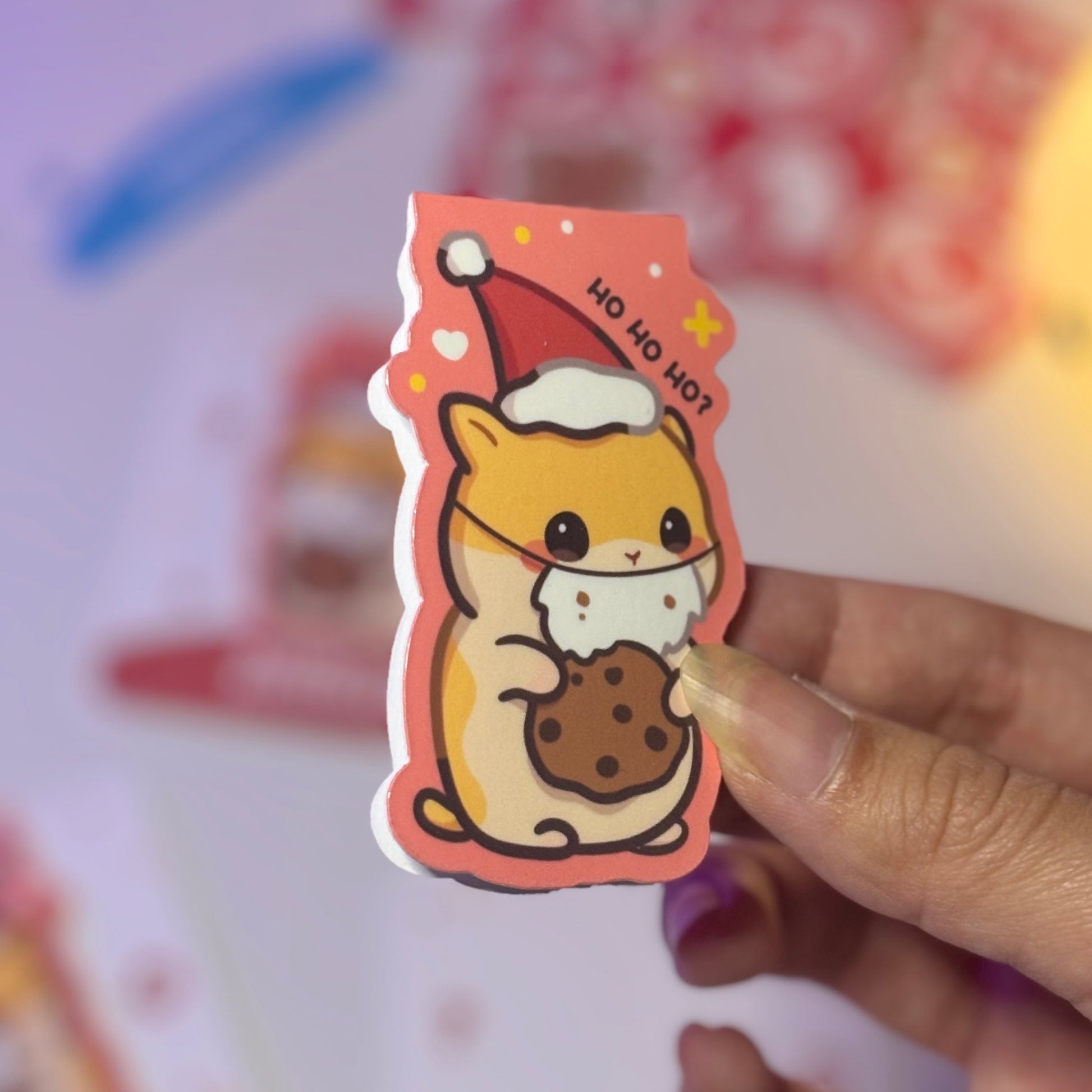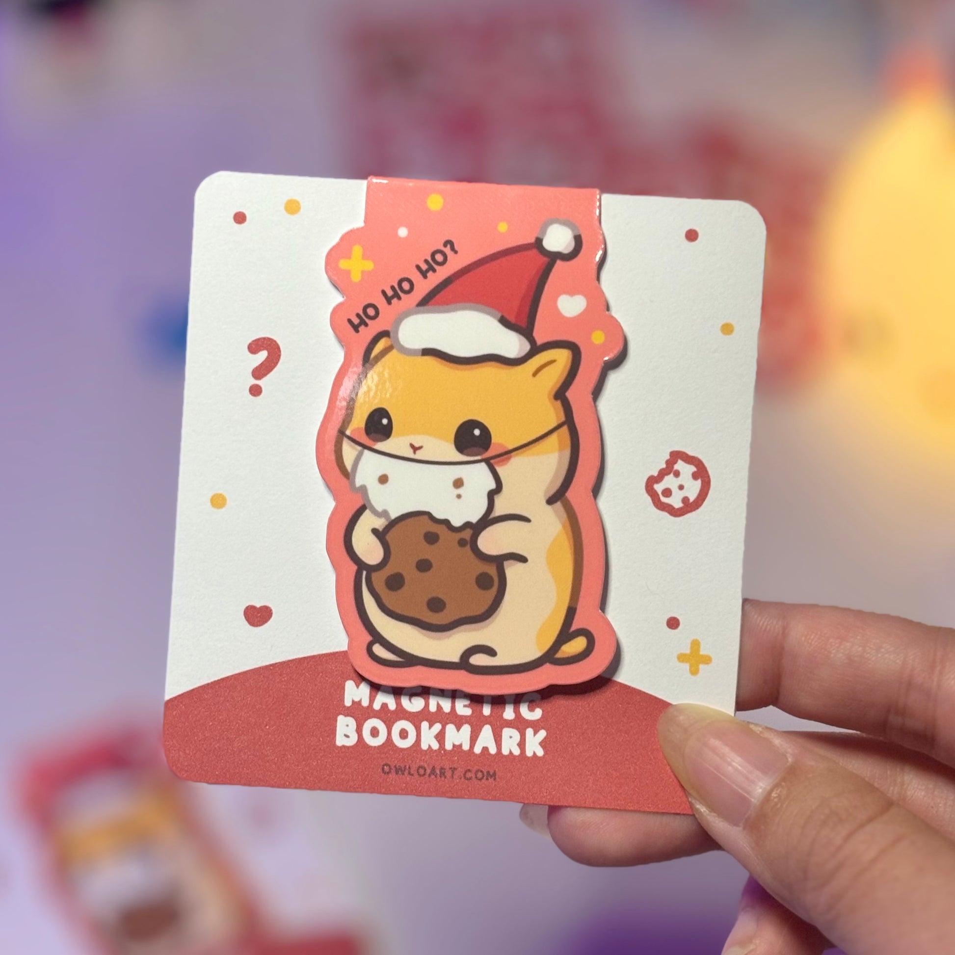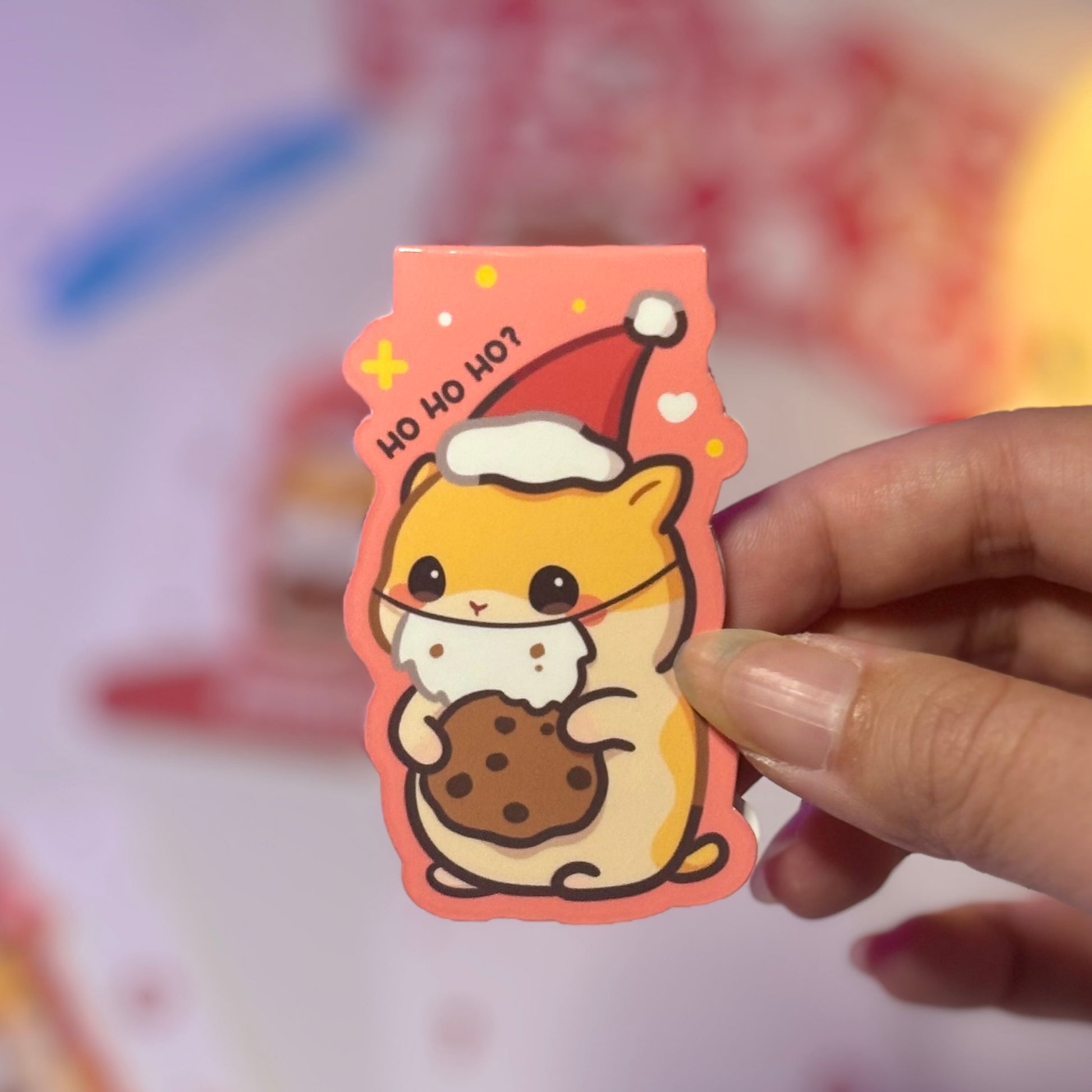 Keep your place with holiday cheer using the Santa Hamster Magnetic Bookmark! Featuring a hamster dressed as Santa sneaking bites of a cookie, this bookmark is both functional and fun for your favorite holiday reads.